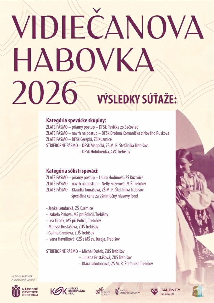 Vo štvrtok 19. marca 2026 sme uskutočnili regionálne kolo celoštátnej postupovej súťaže a prehliadky hudobného folklóru detí VIDIEČANOVA HABOVKA detí 2026 v priestoroch Základnej umeleckej školy v Trebišove.